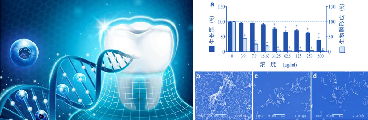 伴放線放線桿菌是一種革蘭陰性短桿菌,是局部侵襲性牙周炎的主要因素,嚴(yán)重影響青少年的門牙和第一臼齒,是牙周炎細(xì)菌病因?qū)W中研究最多的細(xì)菌之一。加拿大拉瓦爾大學(xué)牙科系口腔生態(tài)課題組(Daniel Grenier)研究表明藍(lán)莓中的原花青素(PACs)對口腔細(xì)菌Aa具有很好的抑制效果,研究成果發(fā)表于2018年BMC Complementary andAlternative Medichine上。Daniel Grenier研究指出,PACs的抗菌活性可能具有破壞細(xì)菌細(xì)胞膜的作用。研究人員從高叢藍(lán)莓的冷凍果實(shí)中分離出了具有強(qiáng)抗氧化力的PACs,采用微板稀釋法測定該化合物對Aa生長的影響。結(jié)果表明,PACs屬于劑量依賴性化合物,在一定范圍內(nèi)可以通過調(diào)整化合物的使用量而改變其效用。