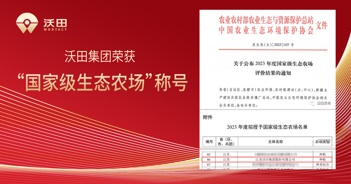 近期,農業農村部農業生態與資源保護總站聯合中國農業生態環境保護協會在全國開展了2023年生態農場評價工作。中國農業生態環境保護協會發布《關于公布2023年度國家級生態農場評價結果的通知》,江蘇沃田集團股份有限公司榮獲“2023年國家級生態農場”稱號。