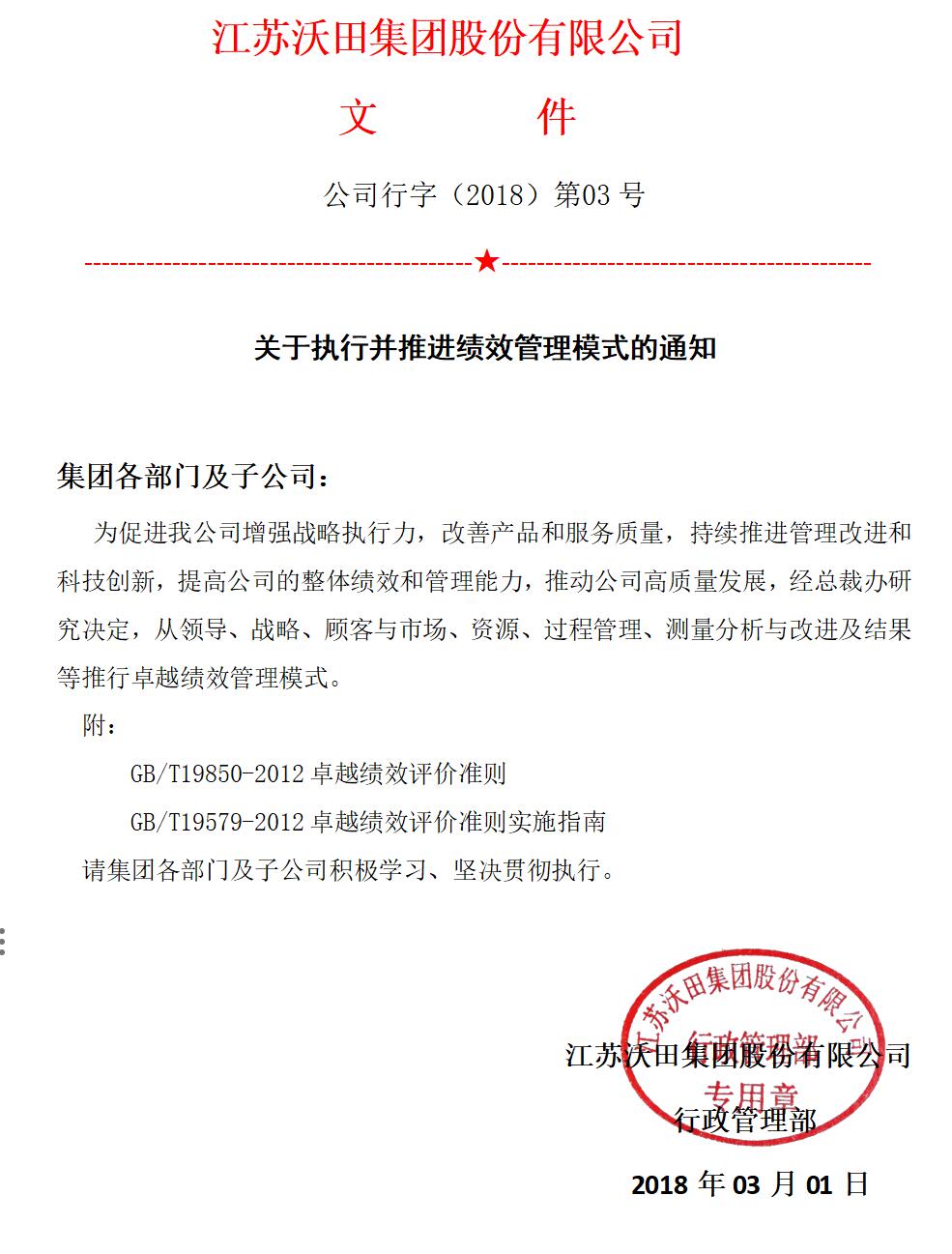 關于執行并推進績效管理模式的通知